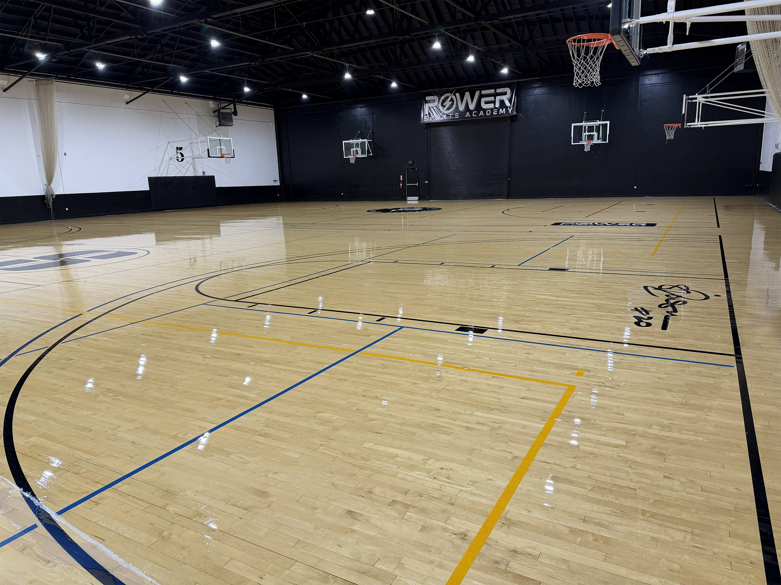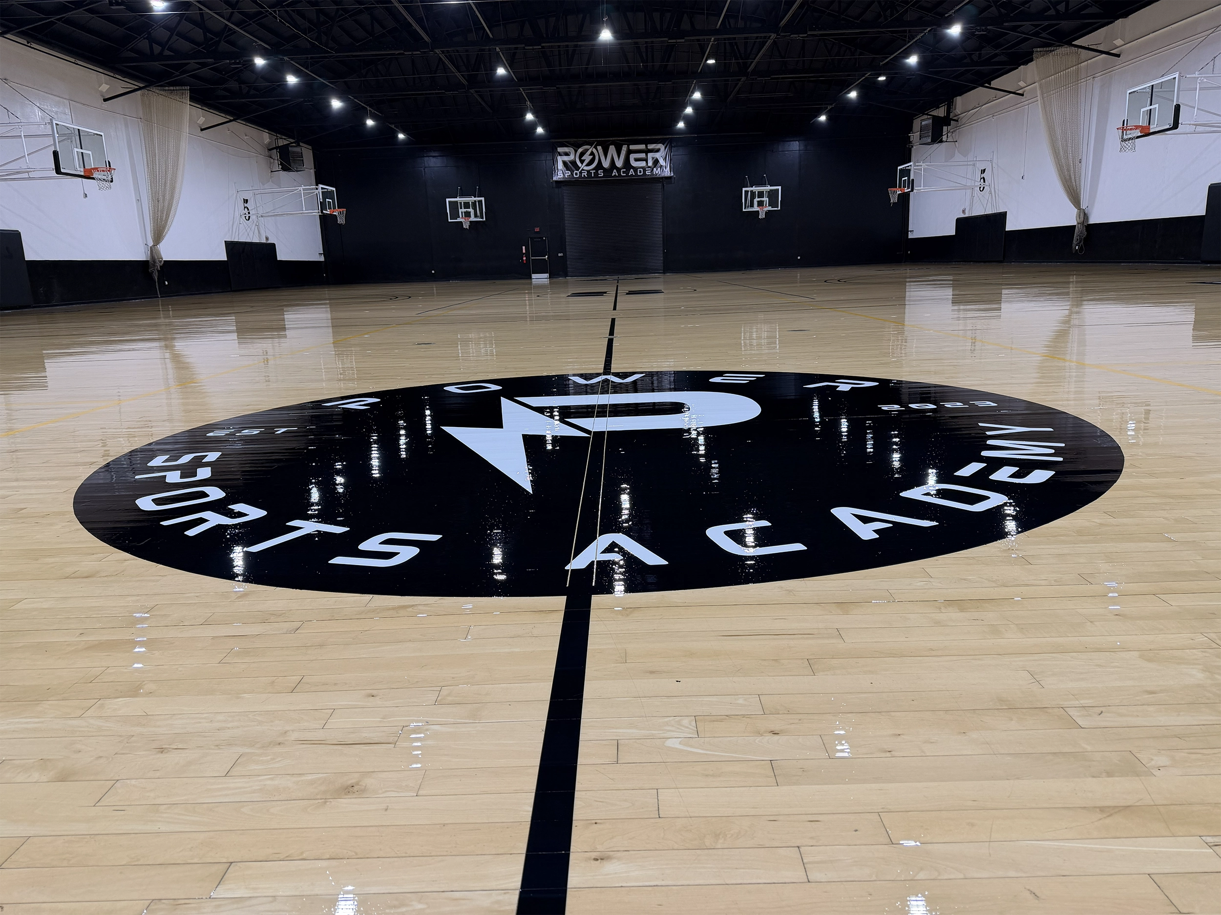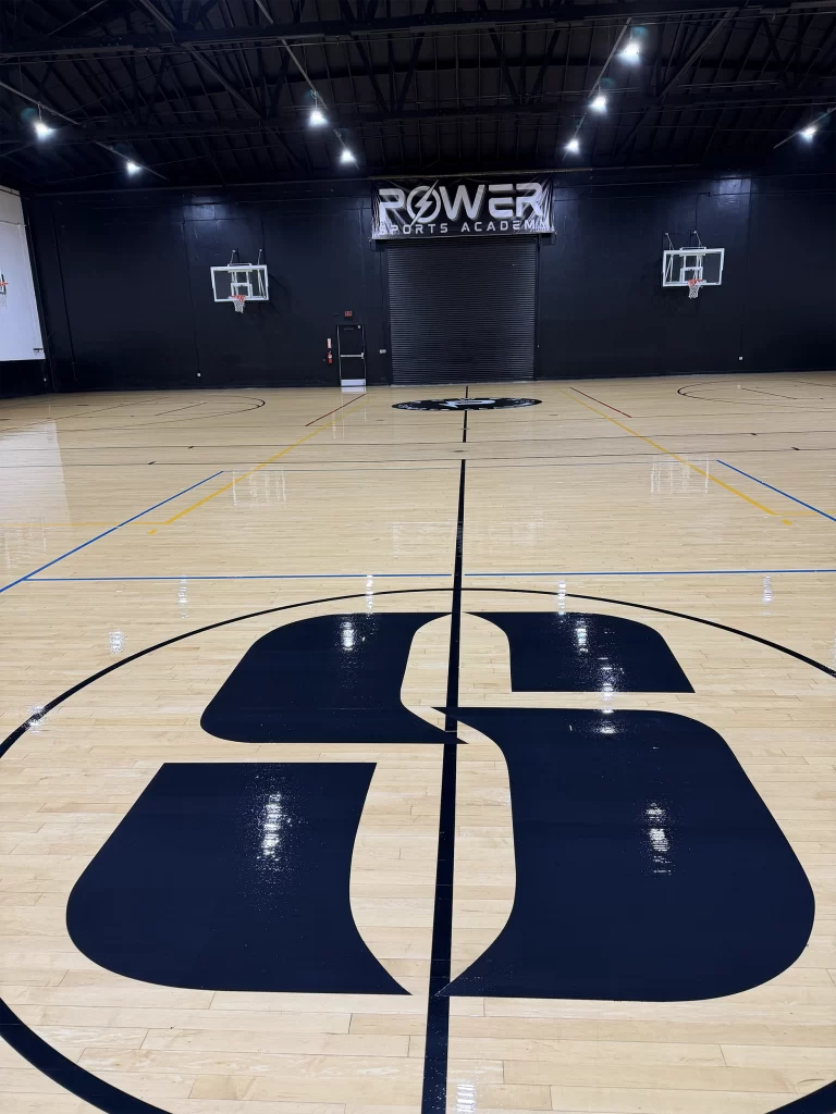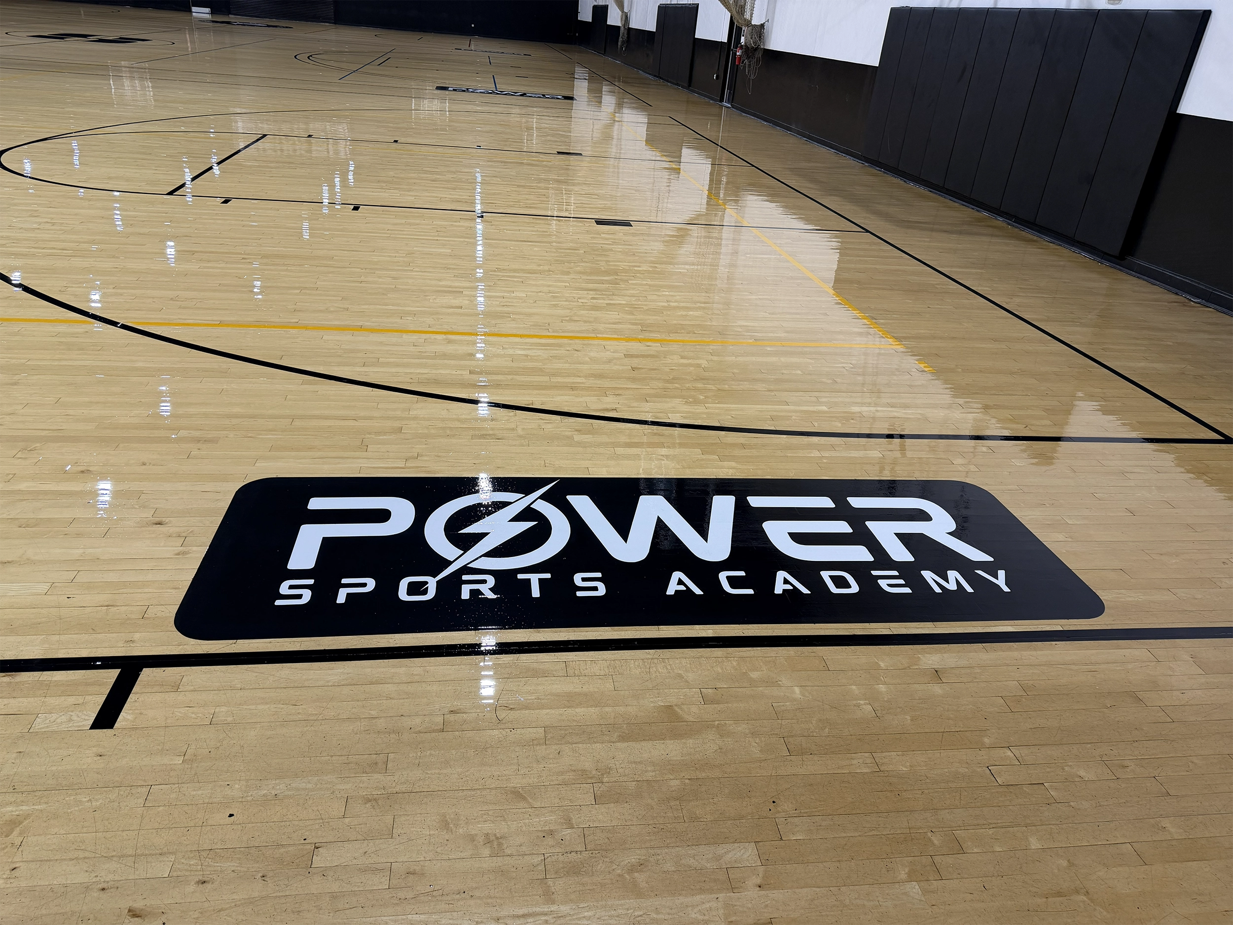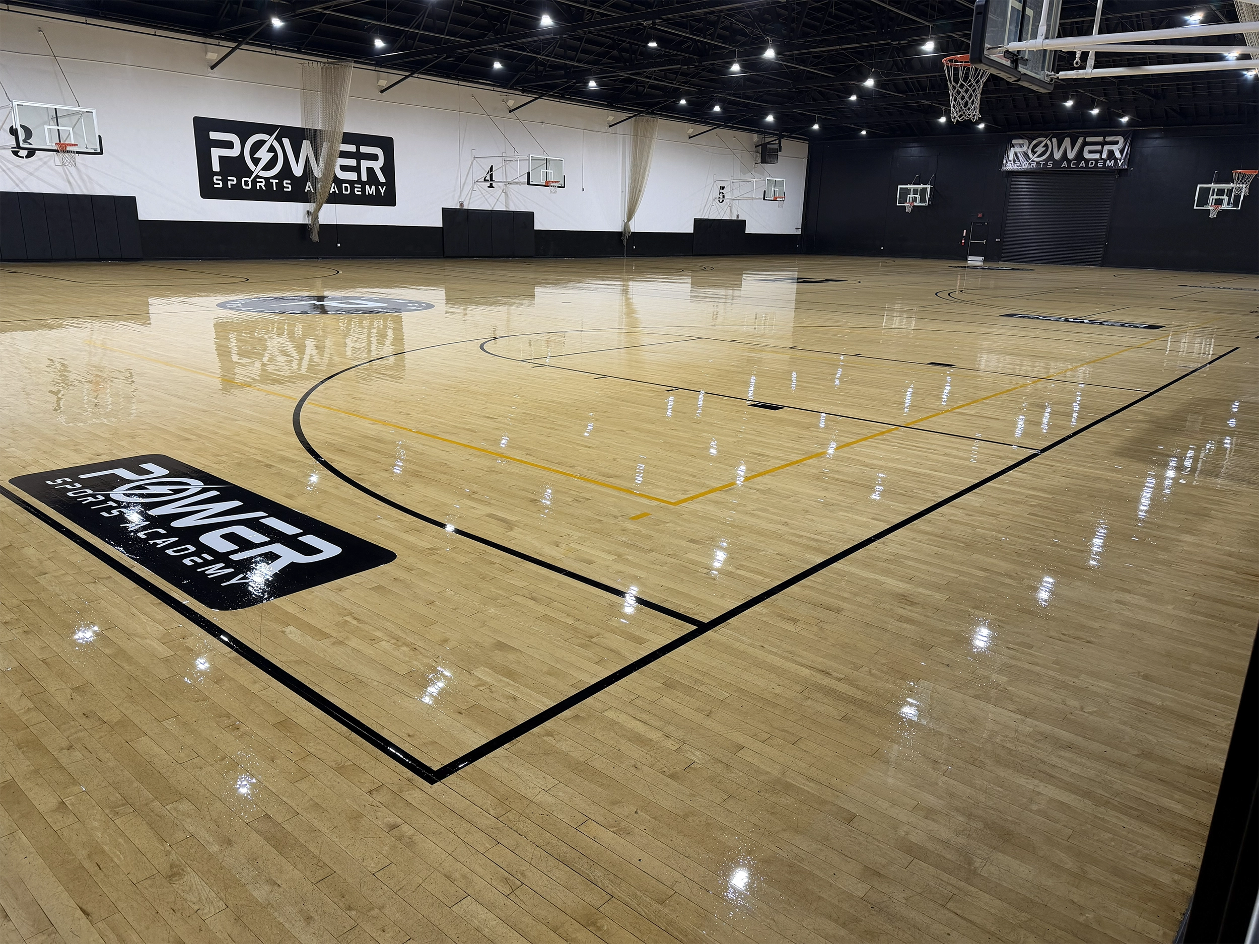 GSCF completed a full sand and refinish, including artwork, of Power Sports Academy’s Sport Courts